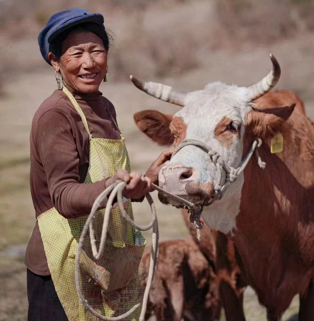 在拐乐村,时常能看到熙熙攘攘的村民拉着牛“集会”。身穿白色长衫,站在牛群中间,和村民交流的,就是一直在村里陪伴着农户的项目技术团队。