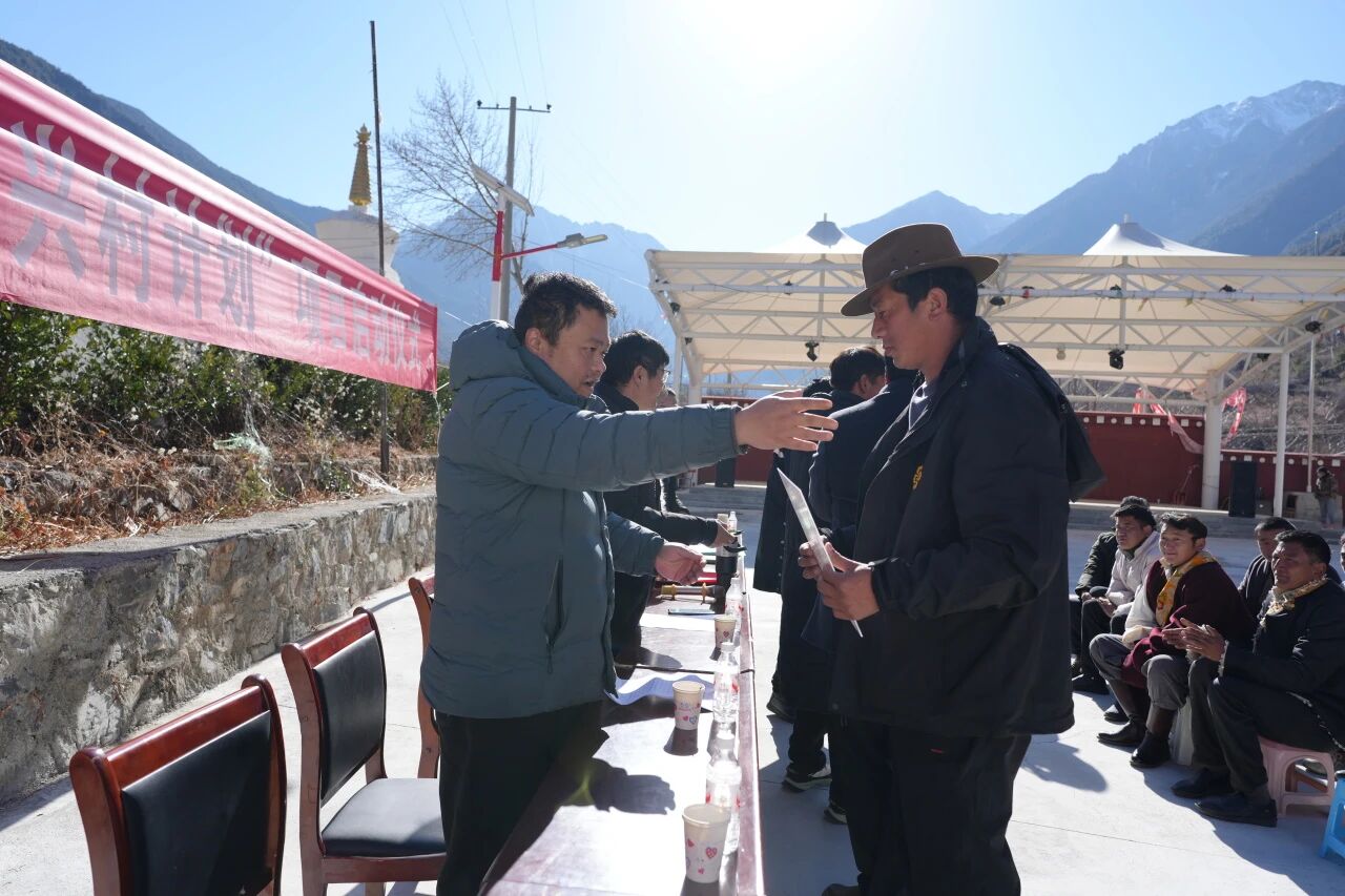 2026年1月16日,“牛牛惠民兴村计划”启动仪式在乡城县然乌乡纳木村村委广场圆满举行。四川省科学技术协会、然乌乡人民政府、四川海惠助贫服务中心,以及纳木村、东尔村、热麦村、克麦村村委代表和受益群众代表共同出席。