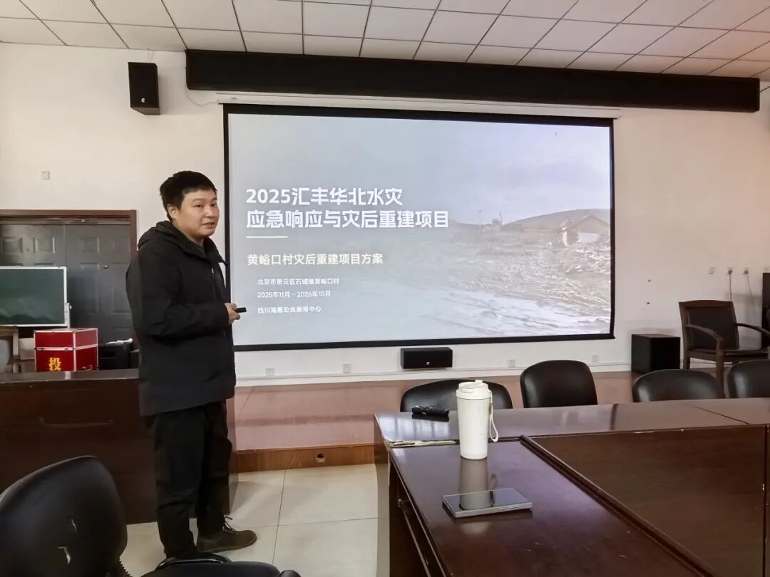 2026年1月14日,在北京密云区石城镇黄峪口村委会议室,由北京汇丰公益基金会支持,四川海惠助贫服务中心执行的“汇丰华北水灾应急响应与灾后重建项目——黄峪口村灾害重建项目”启动与说明会正式举行。这标志着,黄峪口村正式迈入有规划、有支持、有陪伴的系统化重建与韧性成长新阶段。