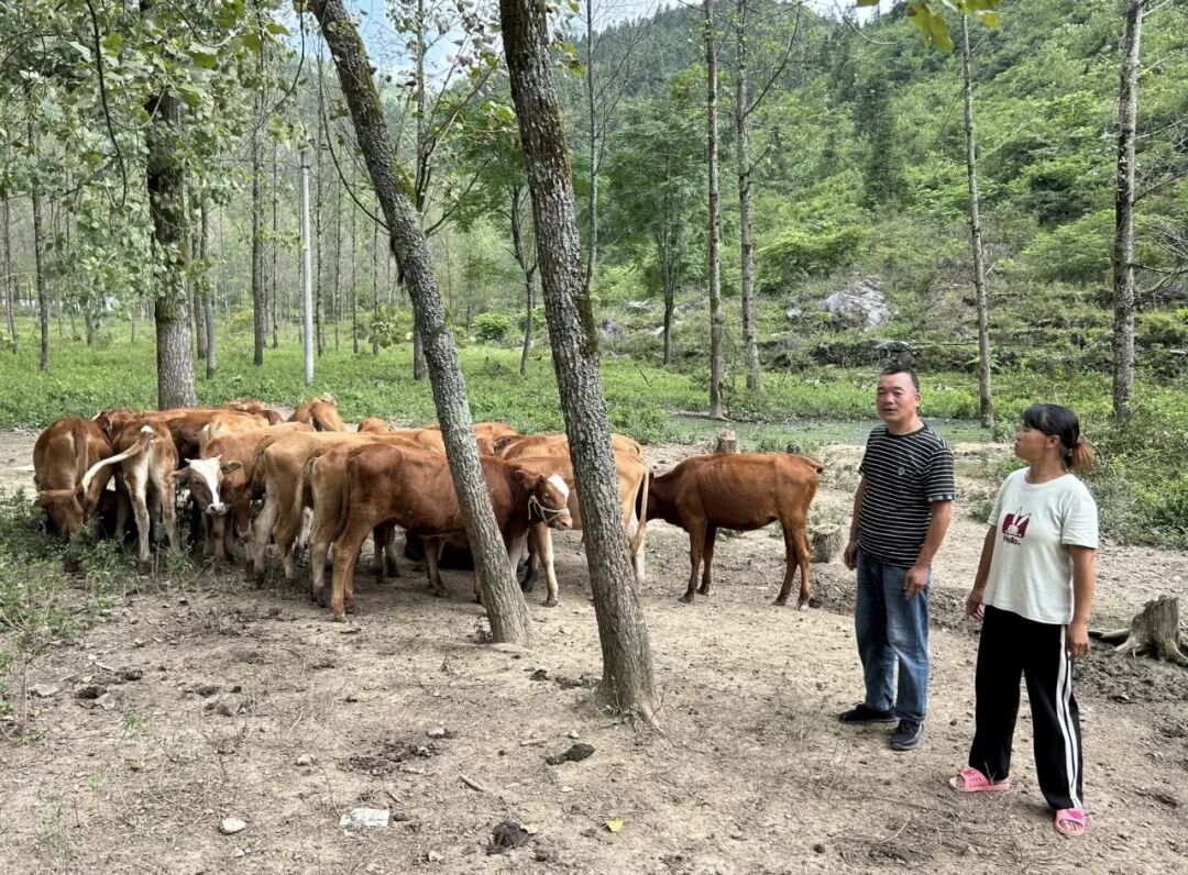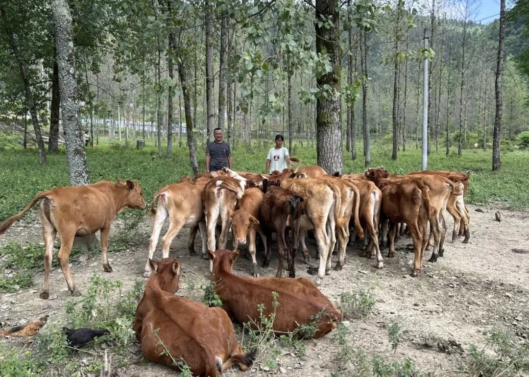 临近中午,杨峰夫妇将牛群驱赶到牛棚旁边的树荫下,在问到养牛还需要什么帮助时,杨峰向项目人员腼腆地说到,目前牛群健康状况良好,加上有和其他养牛户定期交流的机会,自己的养牛技术也在逐渐进步。