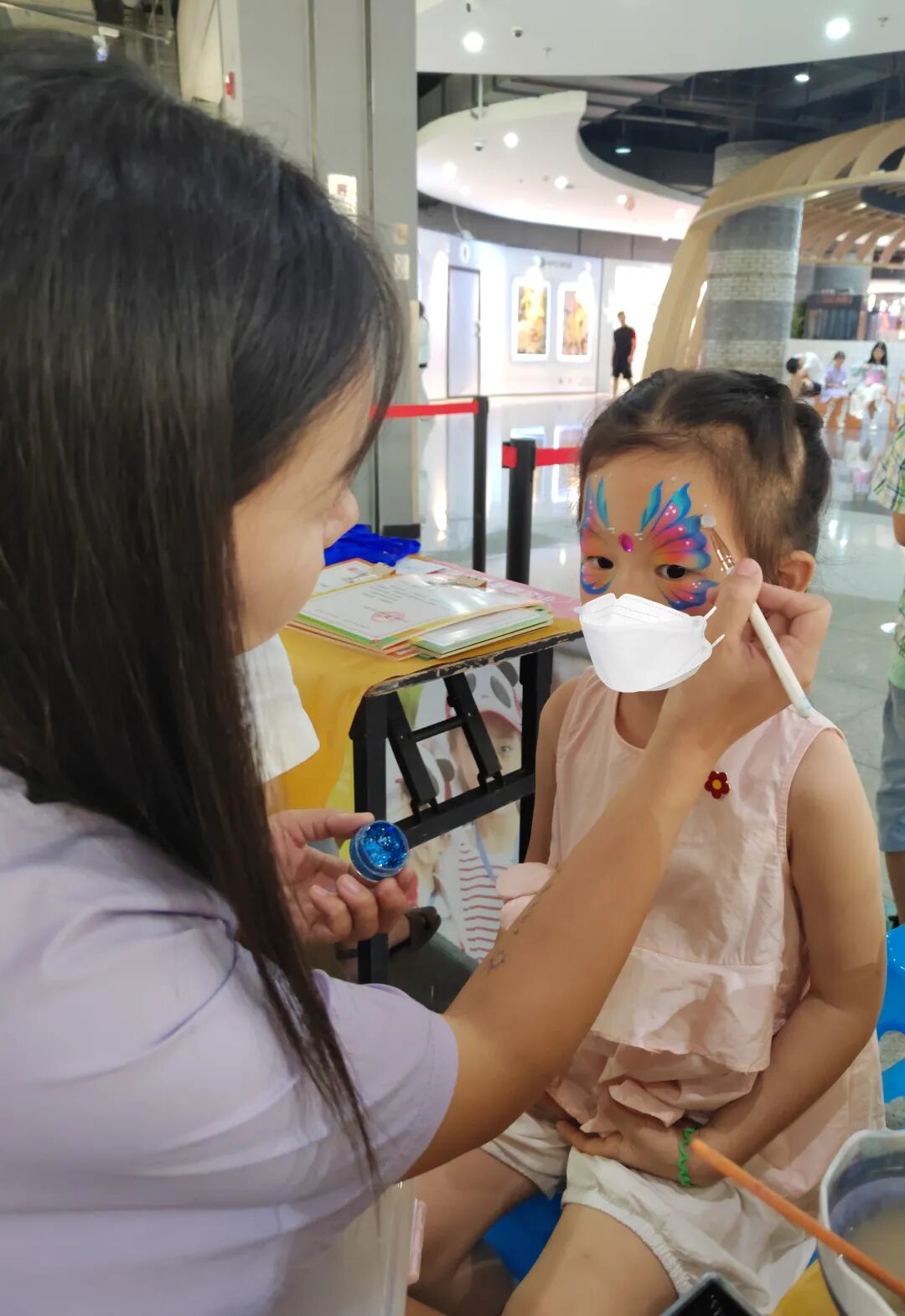 面部彩绘摊位,现场为大家绘制童趣彩绘。